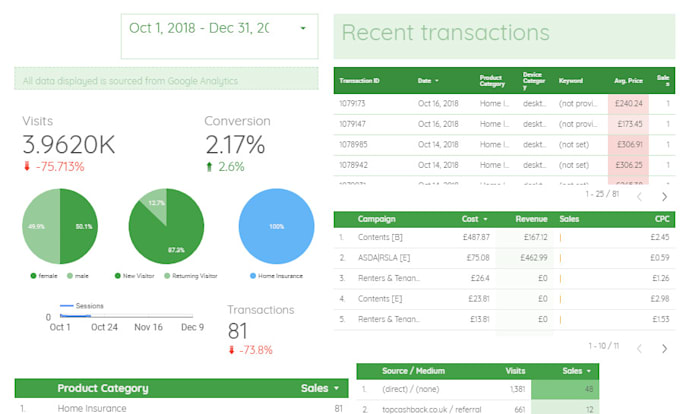 Google Data Studio is an online reporting tool that connect Google Analytics to a beautiful reporting suite.With this gig, you will get a dashboard that presents all your Analytics data in easy to read graphs and charts to help you make business decisions based on how your customers are behaving.